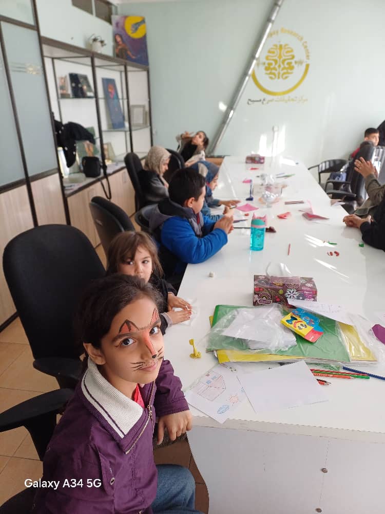 در طبقه سوم انجمن سه مربی از خانه خلاقیت با کودکان کار کردند. و روی جهره هایشان نقاشی انجام دادند.